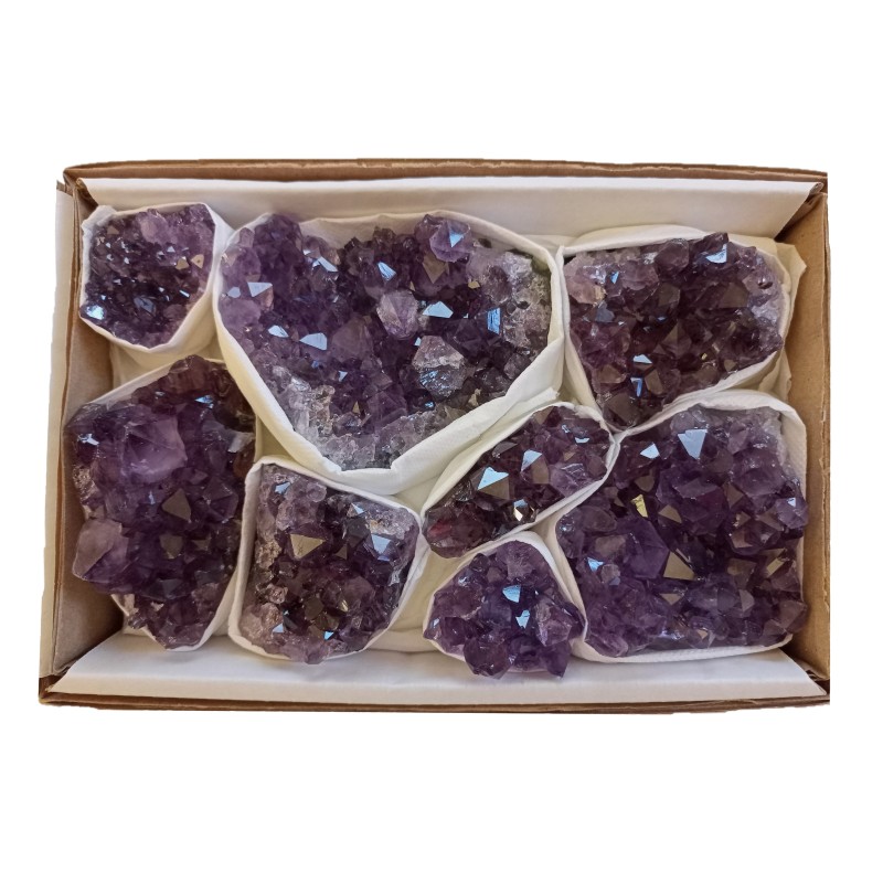 The strong healing powers of Amethyst can transmute lower vibrations to higher frequencies, transforming negative energy to love energy. Amethyst clears and repairs holes in the aura, draws in Divine energy, and aligns and fosters cooperation between energy bodies. Amethyst was used to recover from both physical addictions as well as addictive relationships. Amethyst can encourage inner strength and relieve stress and is a popular metaphysical stone.