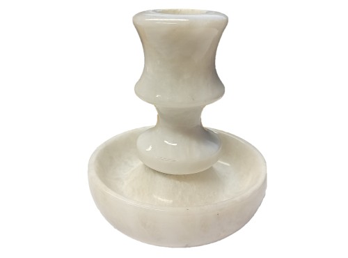 Himalayan White Hand Carved Candlestick Holder 3 X 3"