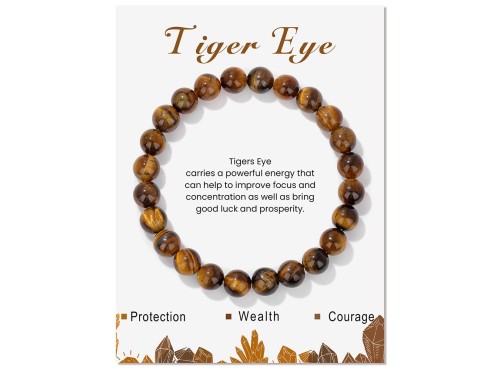 Tiger Eye Gemstone Stretchy 8mm Ball Bracelet With Message Card (55mm)
